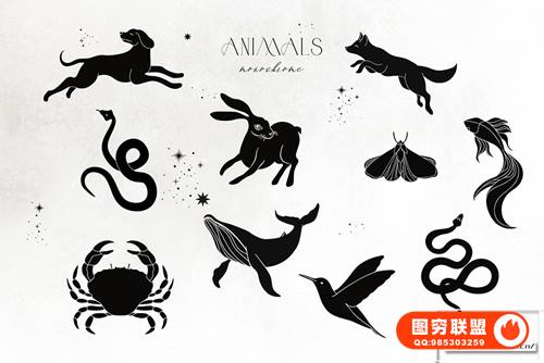 10 个单色动物 ~1400-3000px, png+eps, 300dpi