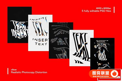 [PSD模板]5个模拟文件扫描影印失真故障特效PS模板 Studio 2am – xScan:Photocopy Distortion Effect