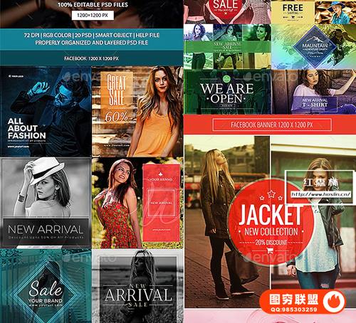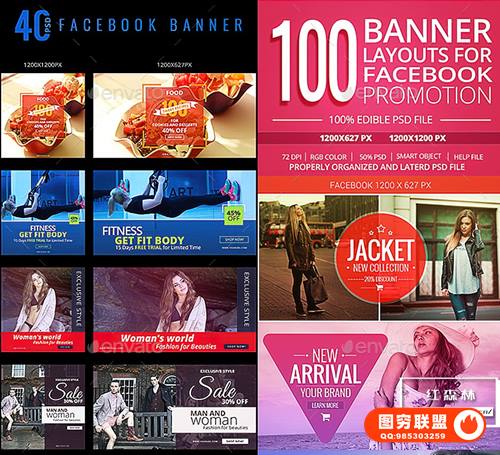100套脸书促销 Banner 1200*627px;1200*1200px