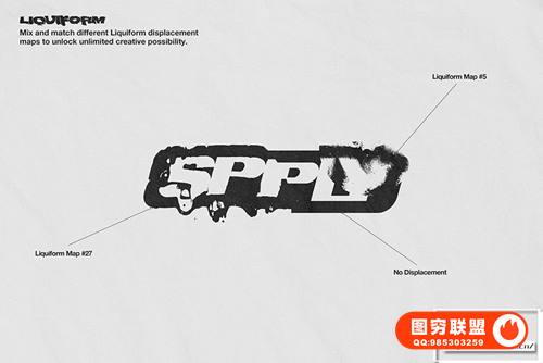 Liquiform 是一组 50 个 Photoshop 置换贴图和 10 个纹理。在几秒钟内为任何图形或图像添加独特的失真效果。您可以改变图形的比例或混合/匹配不同的置换贴图以产生无限的可能性。