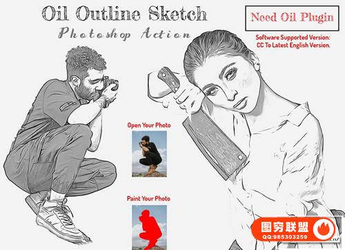 图穷联 » [PS动作]人像照片转油画素描轮廓效果PS特效动作 Oil Outline Sket