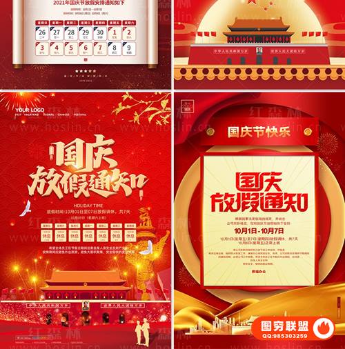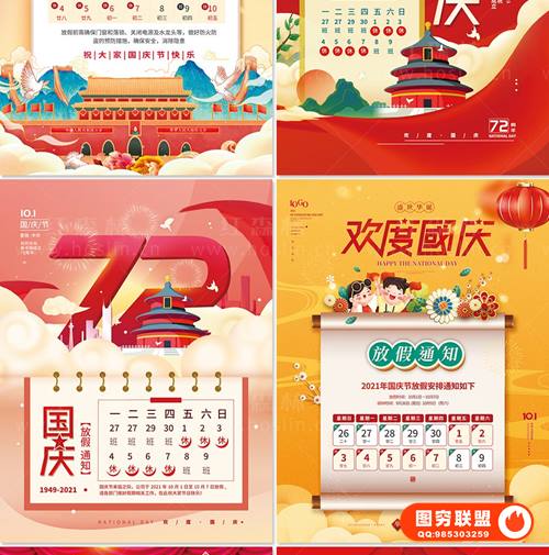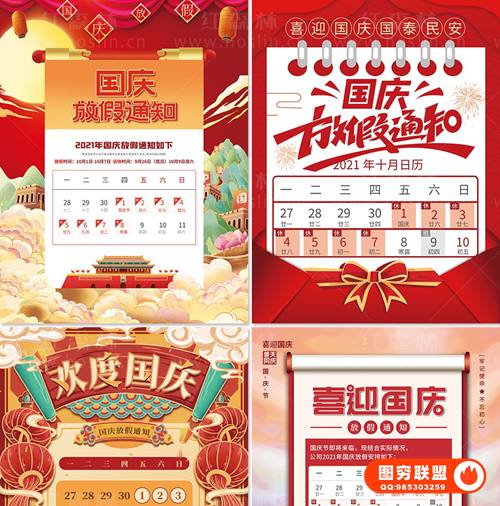 图穷联 » [PSD模板]喜迎国庆50套2021国庆节放假通知PSD海报模板