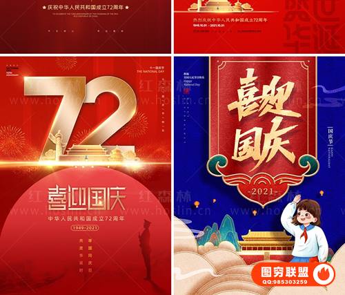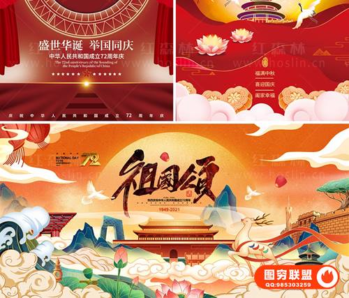 图穷联 » [PSD模板]喜迎国庆61套2021国庆节海报展板建国72周年PSD模板