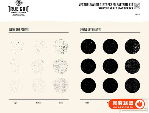 6 x 仿旧纹理图案,每个图案都有 3 种不同大小的黑白预设。