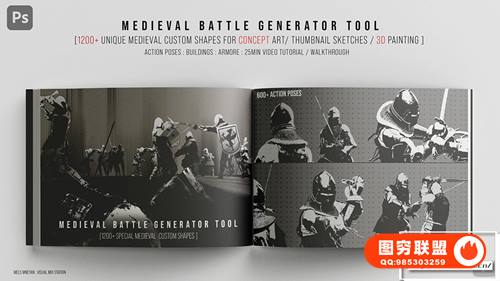 [PS形状]1200+中世纪人物战斗场面绘画草图自定义PS形状 1200+ Unique Custom shapes Mega Pack