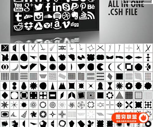 图穷联 » [PS形状]1404个常用PS图标矢量形状合集 1400+ Custom Shape