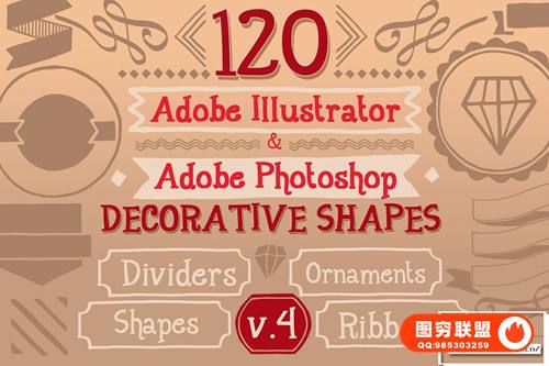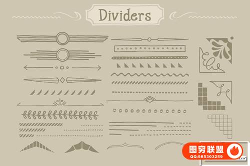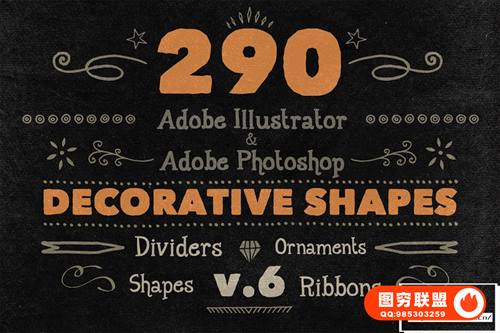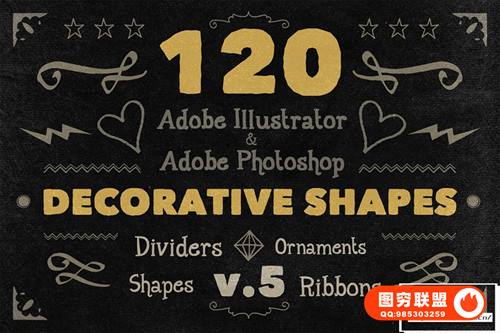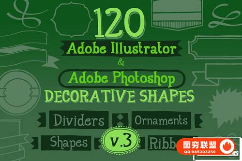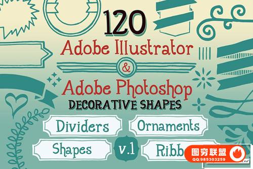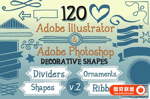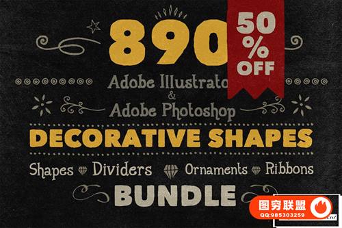 Adobe Illustrator 和 Adobe Photoshop 中的 890 个手写装饰矢量形状(可调整大小的形状)。丝带、分隔线、装饰品和角等形状。