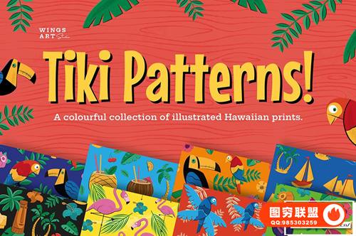 关于产品:Tiki and Hawaiian Patterns,丰富多彩的夏威夷插图画集。