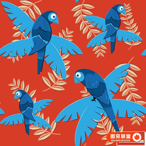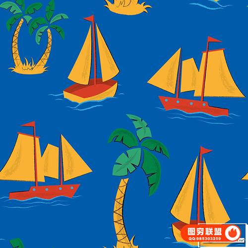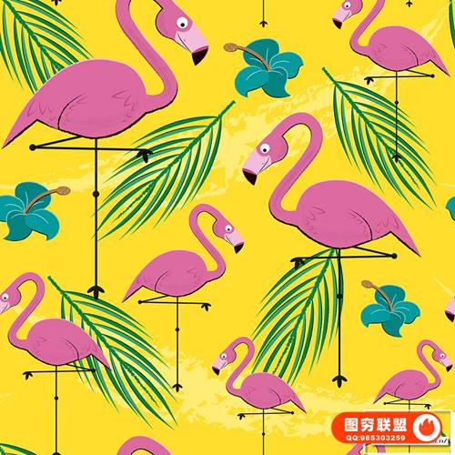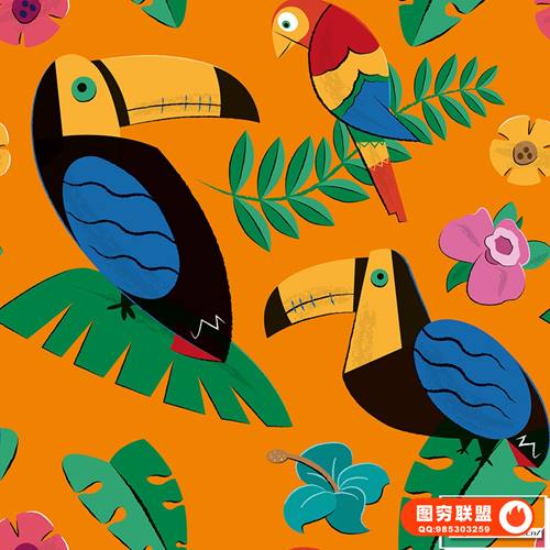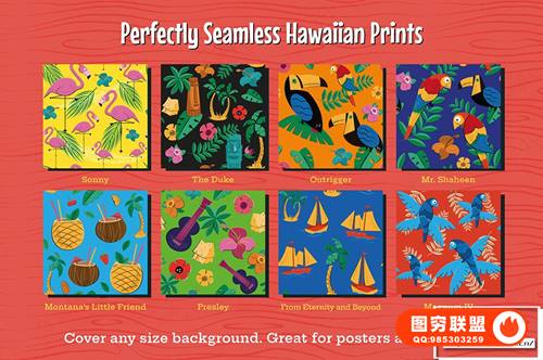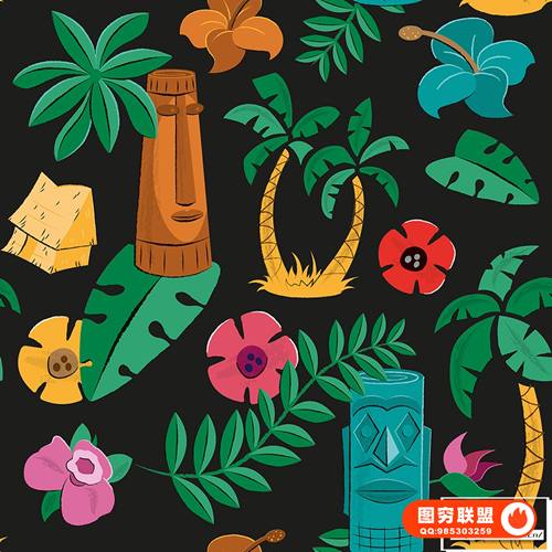 图穷联 » [矢量素材]8种夏威夷风格版画插画彩色印花无缝矢量图案设计素材 Tiki and H
