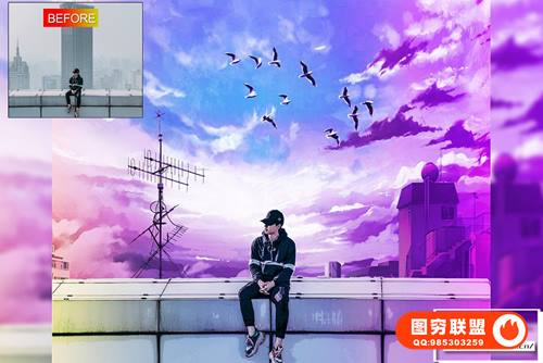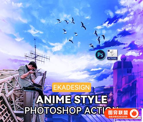 图穷联 » [PS动作]照片生成油画颜料梦幻水彩画动漫效果PS特效动作 Anime Style