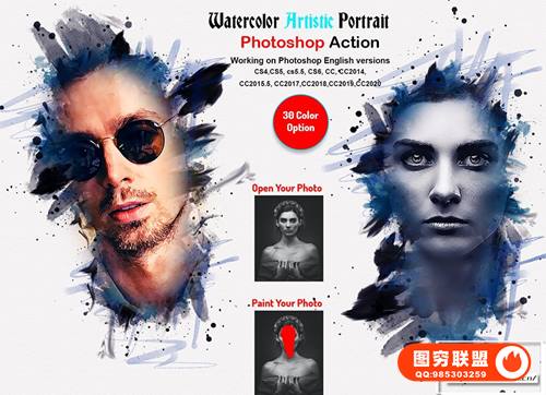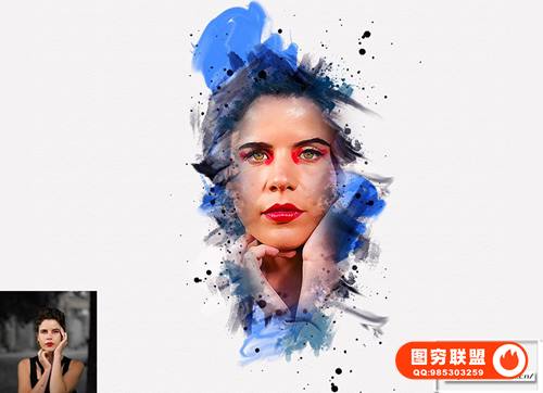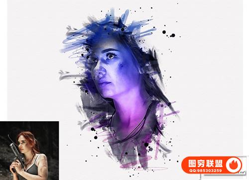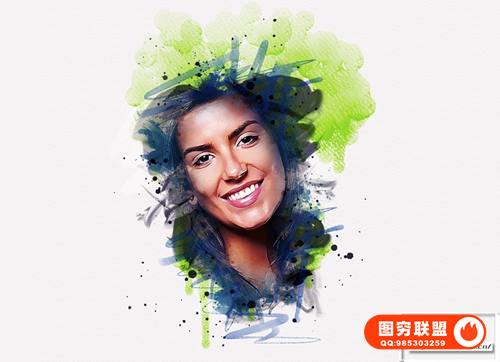 图穷联 » [PS动作]水彩艺术肖像画效果PS动作 Watercolor Artistic P