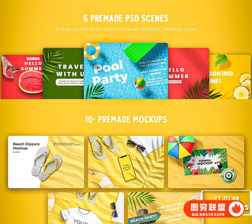 图穷联 » [PS样机]10款夏日场景通用广告宣传海报设计PS展示样机 Summer Scene