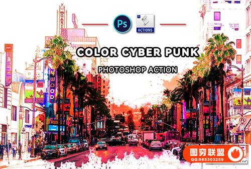 图穷联 » [PS动作]建筑街道色彩溢出赛博朋克漫画效果PS特效动作 Color Cyber P