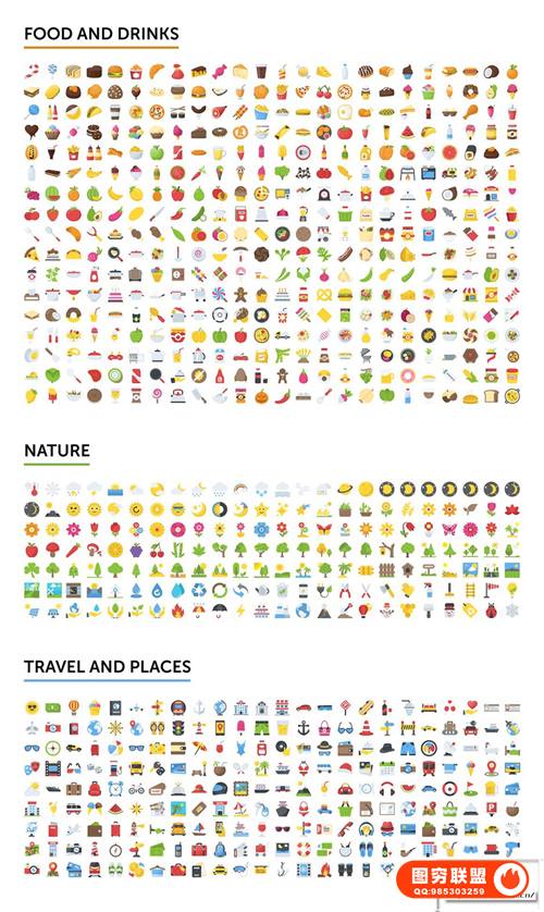 图穷联 » [矢量素材]2500个动物建筑运动生活物品标志符号笑脸表情等Emoji矢量图像合集