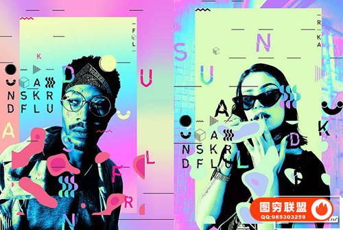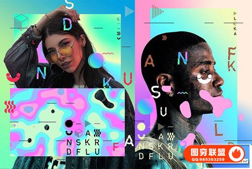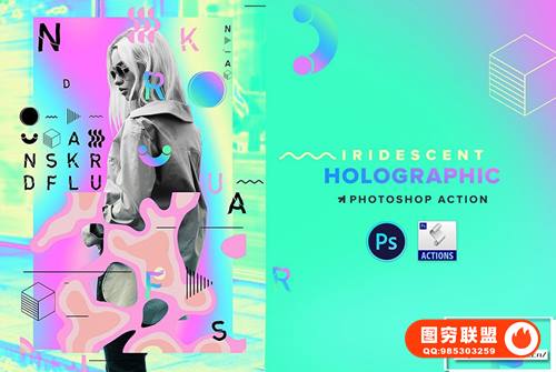 图穷联 » [PS动作]制作全息彩虹炫彩渐变文字海报特效PS动作 Holographic Iri