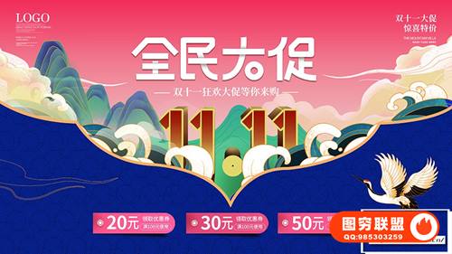 图穷联 » [PSD模板]横板淘宝天猫电商双十一国潮海报促销宣传广告PSD模板