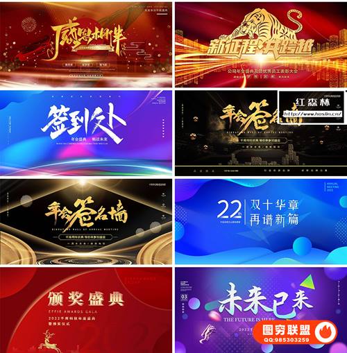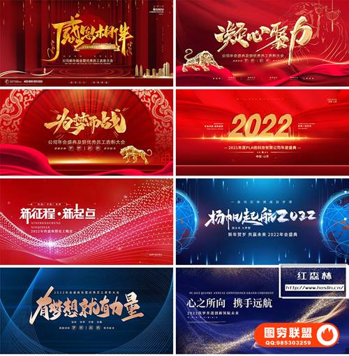 图穷联 » [PSD模板]72款2022年新年春节企业公司年会海报背景墙签到科技展板PS设计素材