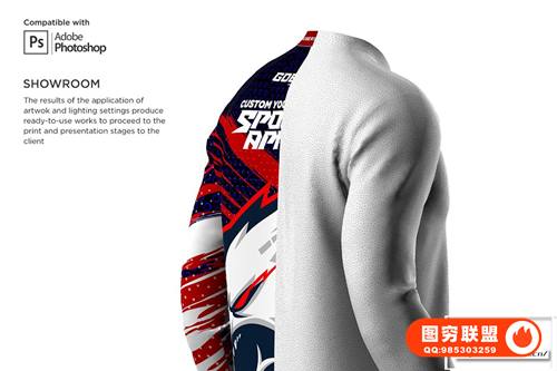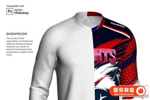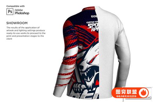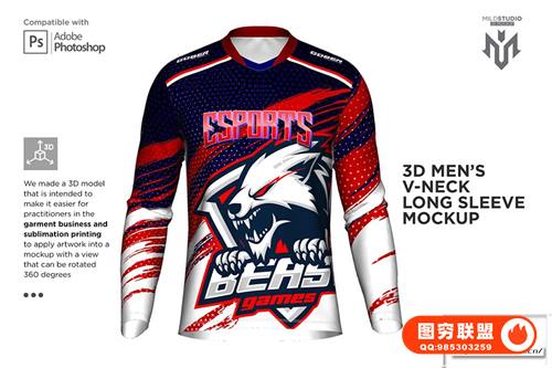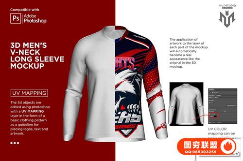 [PS样机]男士3D立体双V领长袖上衣模型PSD样机 3D Double V Neck Jersey Mockup