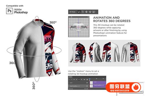 Mildesign 3d 模型适用于从事服装和升华行业的设计师。只有1个模型可以从角度和细节呈现整个服装,并且可以360度旋转。在时间线菜单上配备旋转动画,它看起来对客户很有吸引力,并节省了将艺术品应用于模型的时间。在更换艺术品时设置较低的分辨率,并在完成后提高分辨率,使其看起来非常详细。