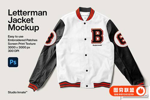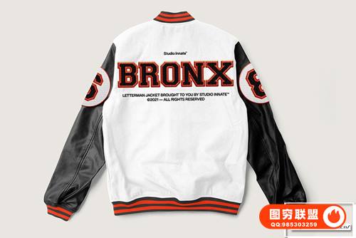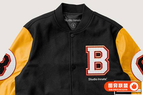 图穷联 » [PS样机]复古棒球服夹克外套VI贴图模型PSD样机 Letterman Jacke