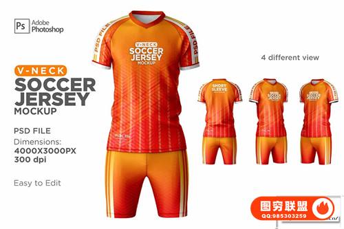 图穷联 » [PS样机]男士球衣运动服套装模型PSD样机 Men Soccer Jersey k