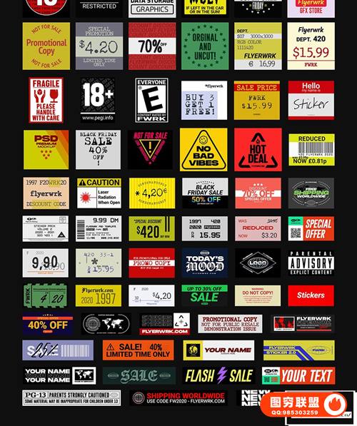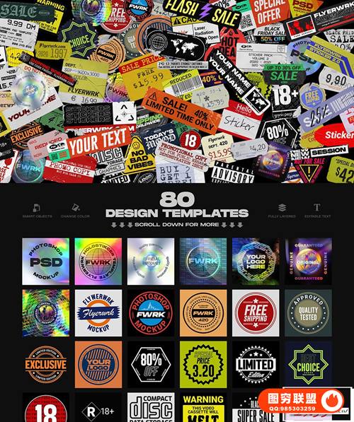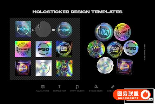 每个贴纸以前都带有 3 个预制设计,为了更加灵活,我们现在将所有设计打包在一个单独的文件夹中。现在您可以选择 80 多个贴纸模板,包括新的全息设计。
