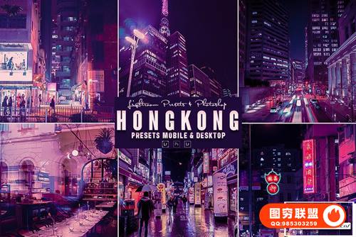 图穷联 » [LR预设]3款港风夜景城市街道建筑灯光调色Lightrom预设PS动作 Hongk