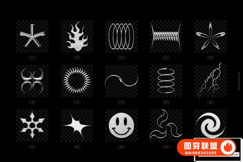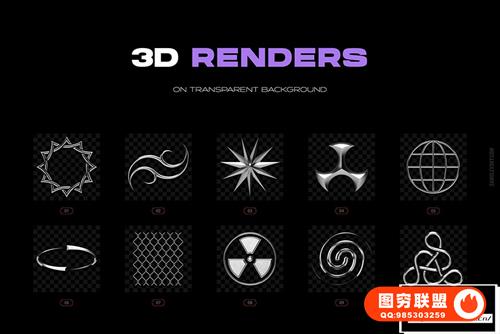图穷联 » [图片素材]100个3D/2D抽象怪异魔幻特色酸性设计镀铬形状矢量元素创作素材 Ch