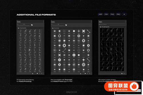 ABR 文件– 适用于 Adobe Photoshop 和 Procreate 的 45 个闪电图笔画笔库。