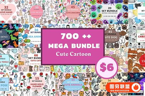 20大类,700+可爱儿童卡通绘画涂鸦素材包,文件格式包括: