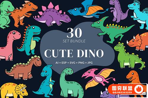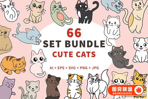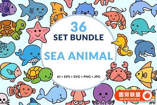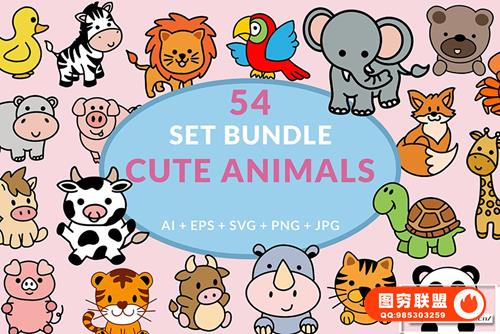 [图片素材]700+儿童卡通可爱花鸟动物卡片涂鸦绘画设计图片素材(含矢量+PNG)Cute Animal Cartoon for Kids Bundle