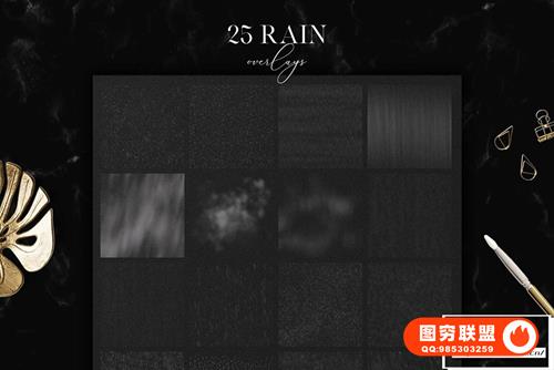 图穷联 » [图片素材]25张逼真雨水下雨雨滴效果摄影后期特效叠加合成素材 25 Rain Ov