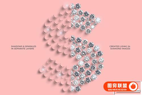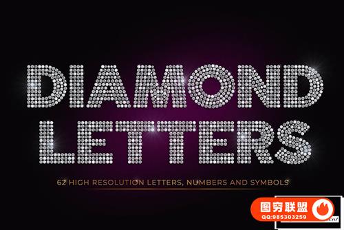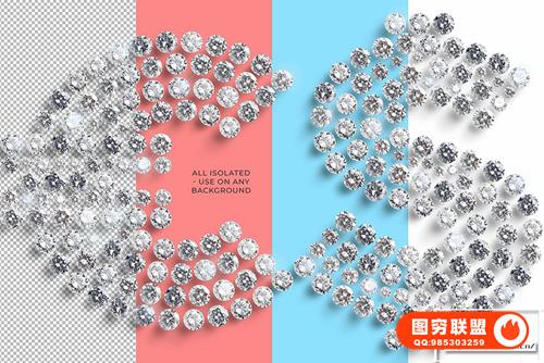 图穷联 » [图片素材]62个闪光钻石组合排列字母数字符号创意设计PNG图片素材 Diamond