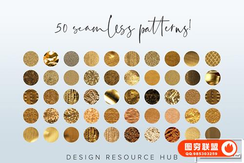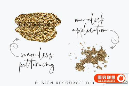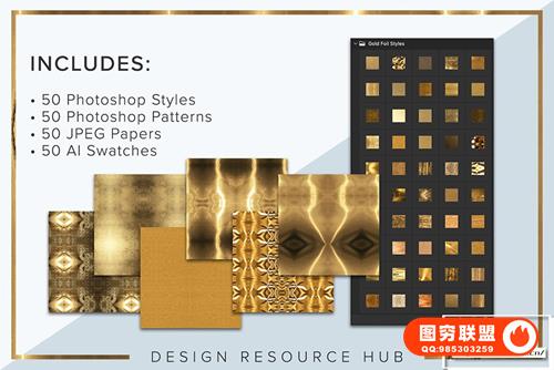图穷联 » [PS样式]50种金箔纸纹理图案文本样式AI色板设计素材 Gold Foil Pho