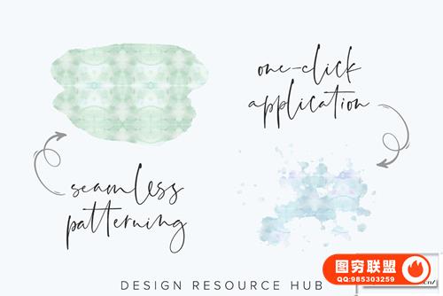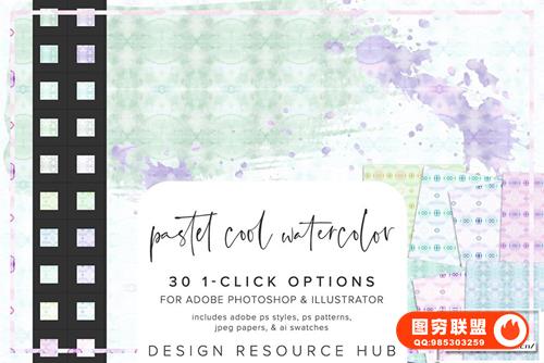 [PS样式]30种淡雅柔和水彩纹理图案文本样式AI色板设计素材 Pastel Cool Watercolor PS Styles
