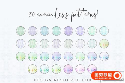 图穷联 » [PS样式]30种淡雅柔和水彩纹理图案文本样式AI色板设计素材 Pastel Coo