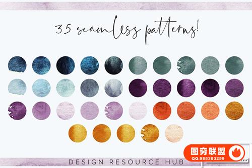 下载后,您可以在 Adobe Photoshop 中导入 .pat 和 .asl 文件,并在 Adobe Illustrator 中加载 .ai 色板文件。也可以根据需要使用 jpeg 纸质文件!