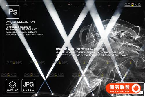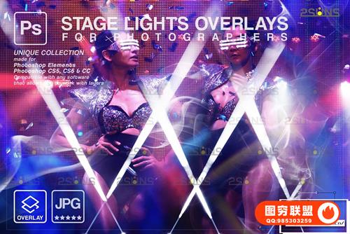 [图片素材]19张炫酷舞台霓虹灯光全息散景灯柱光线五彩烟雾氛围渲染照片叠加合成素材 Stage Lights Overlays V2