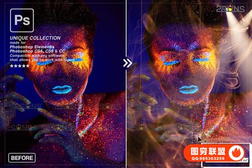 图穷联 » [图片素材]19张炫酷舞台霓虹灯光全息散景灯柱光线五彩烟雾氛围渲染照片叠加合成素材