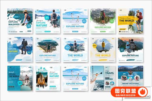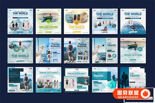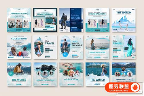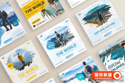 图穷联 » [PSD模板]66+旅游出行INS社交媒体旅行社宣传海报展板PSD设计素材 Soci