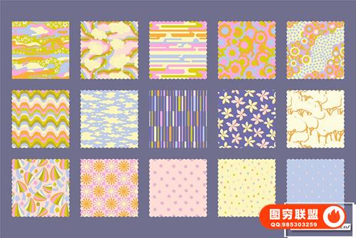 15 种无缝图案(剪裁未剪裁、剪裁),(Ai.Eps 10.Jpg 7200x7200px@300dpi.Png 7200×7200@300dpi 透明背景)。