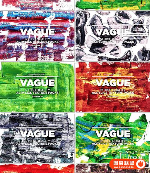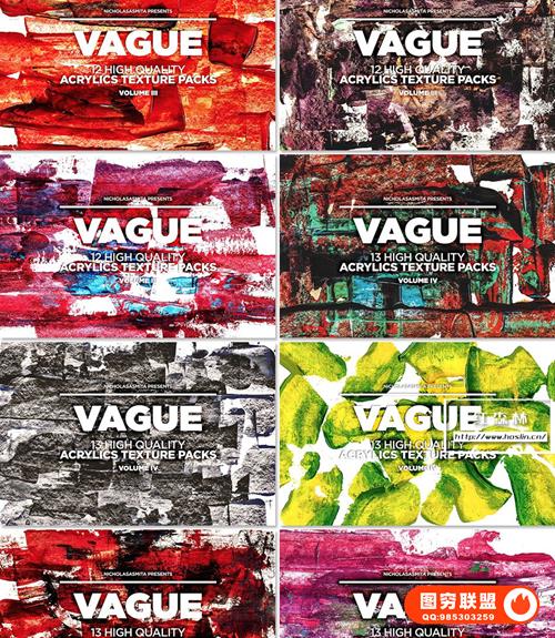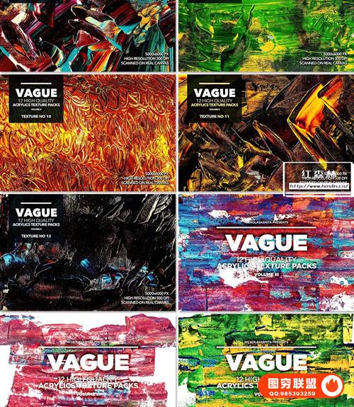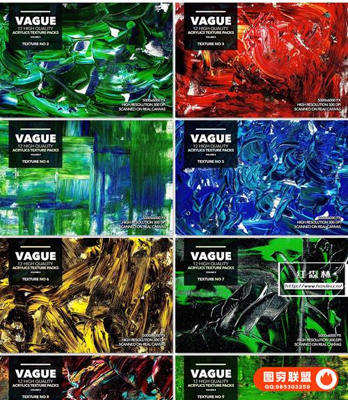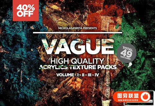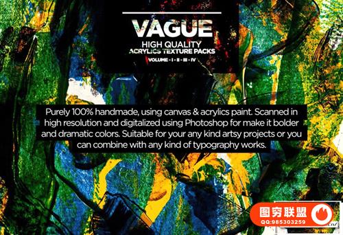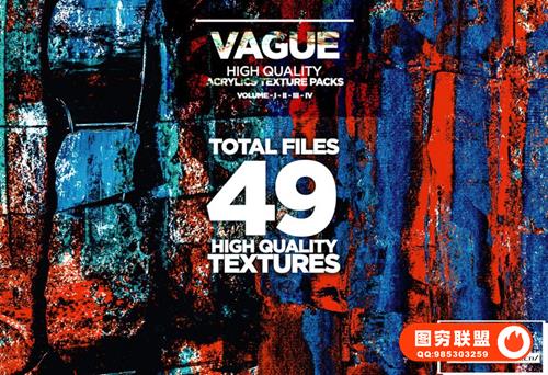 [图片素材]49张高分辨率丙烯酸涂料喷绘纹理艺术设计图片素材 Vague 49 Acrylics Textures Packs