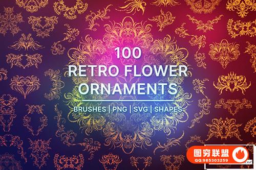 [图片素材]100个复古花纹装饰纹理无缝图案笔刷设计素材 100 Retro Flower Ornaments