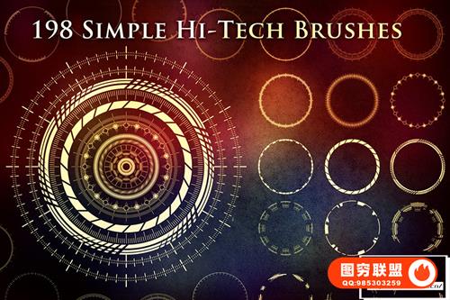 图穷联 » [PS笔刷]198种简单的未来派圆形圆环图案PS笔刷图片设计素材 198 Simpl