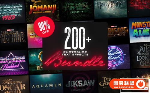 [PSD模板]200+卡通水彩复古电影3D效果Photoshop 文本样式合集 200+ Photoshop Text Effects Bundle