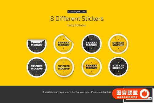 图穷联 » [PS样机]8个圆形贴纸标签不干胶便利贴PSD模型样机 Round Stickers