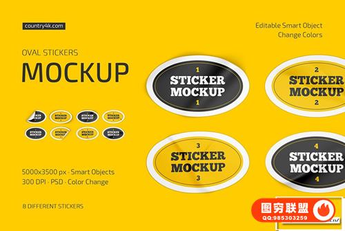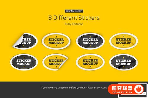 图穷联 » [PS样机]8个椭圆贴纸标签不干胶便利贴PSD模型样机 Oval Stickers