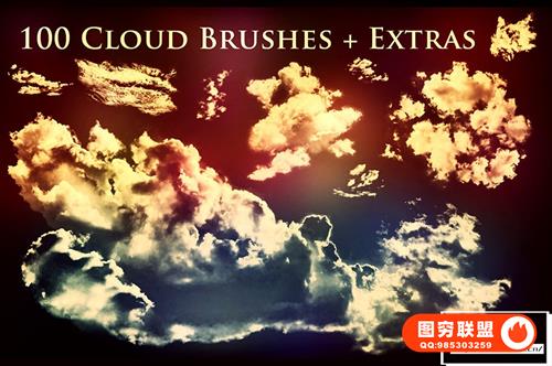 图穷联 » [PS笔刷]100个白云乌云云彩图形PS笔刷图片设计素材 100 Cloud Bru