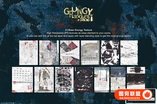 图穷联 » [图片素材]肮脏破败黑暗垃圾划痕叠加纹理图片素材PSD预制素材包 Grungy Te