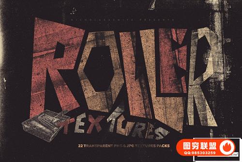 图穷联 » [图片素材]22张滚筒印刷机滚印纹理PNG图片素材 Roller Textures